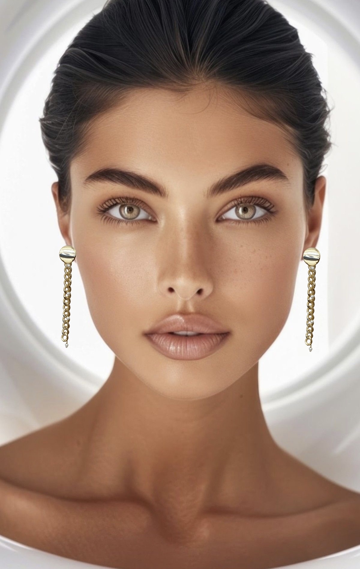 Σκουλαρίκια μακριά με χρυσή αλυσίδα και περλίτσες